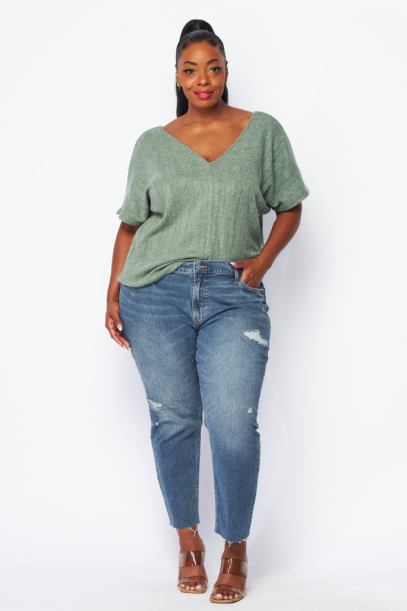 Double V neck Knit Top