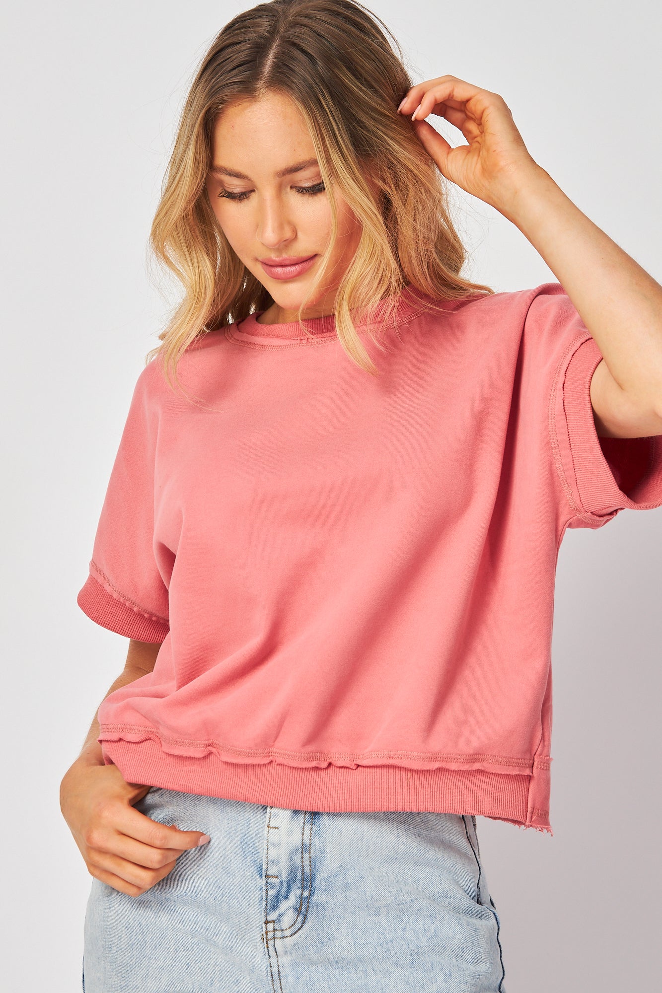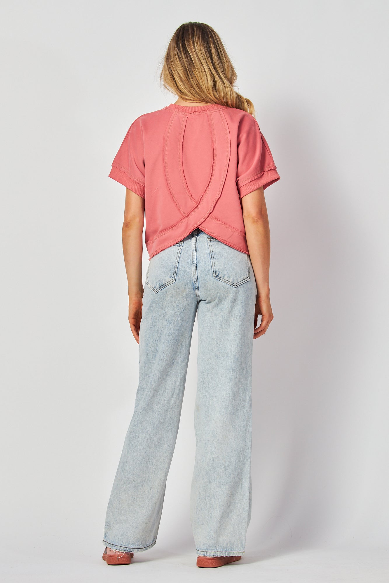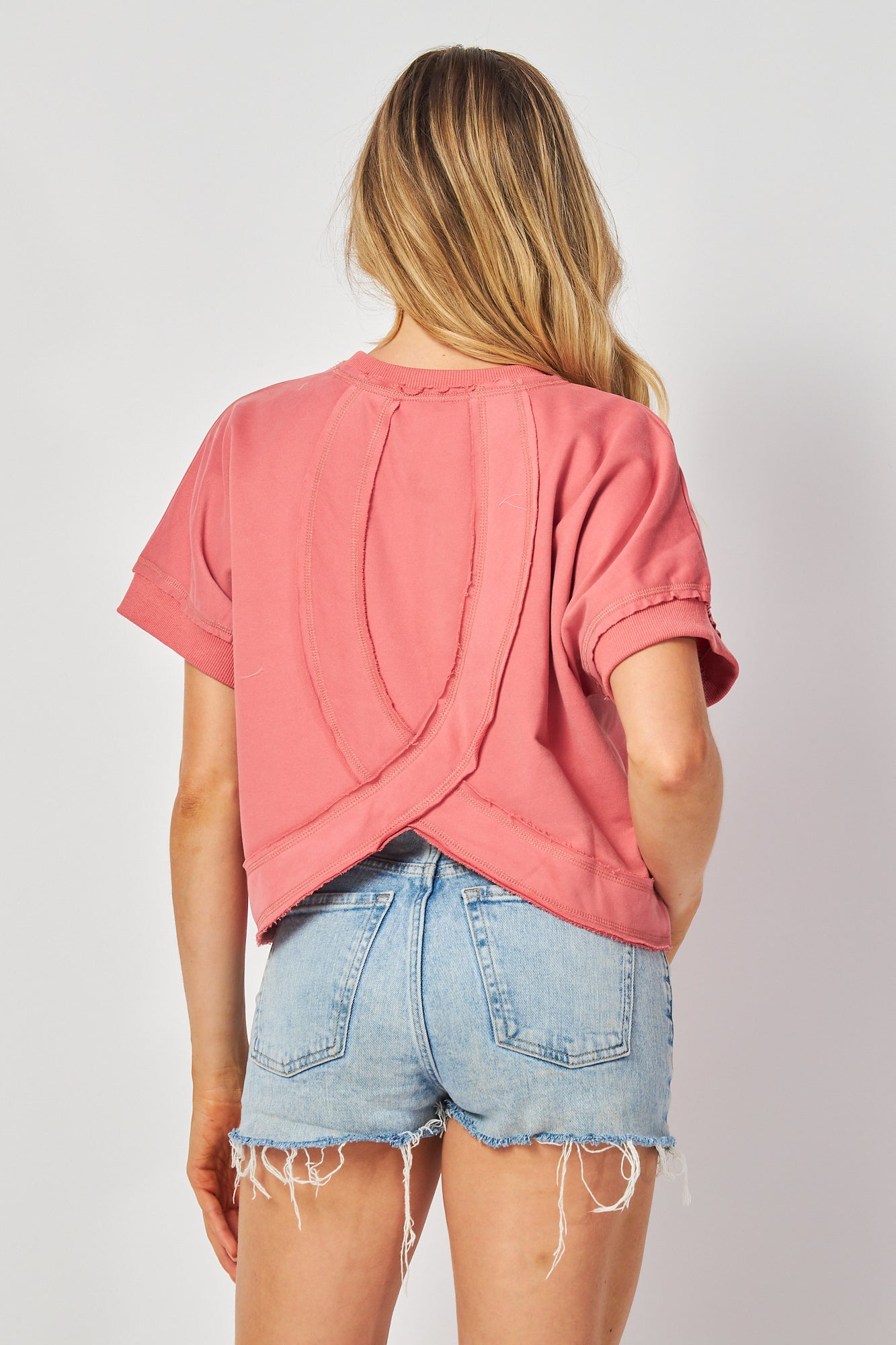 This crew neck top features an interlocking oval design on the back and distressed seams to accentuate this casual chic look. Cotton fabric ensures comfort and sophistication.