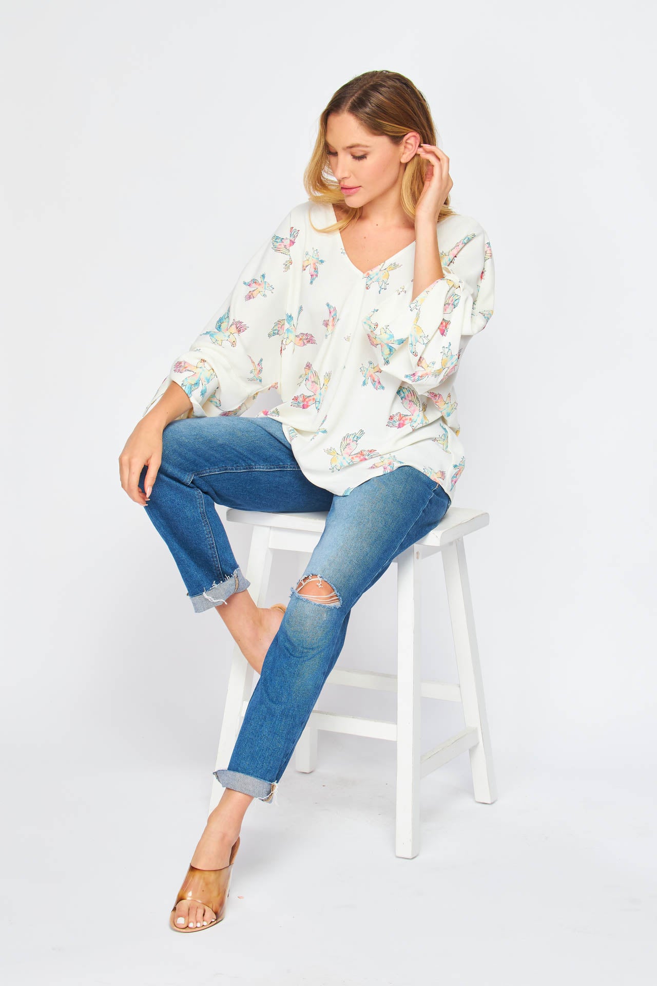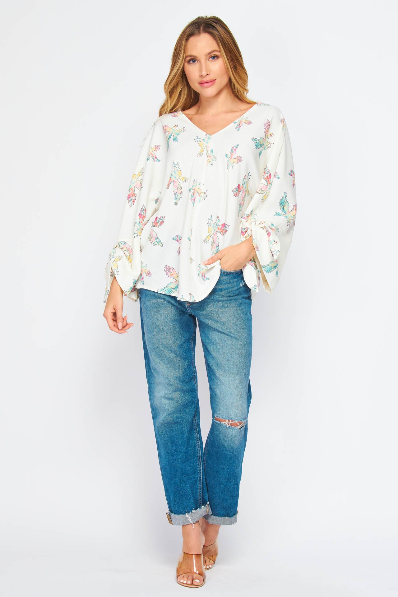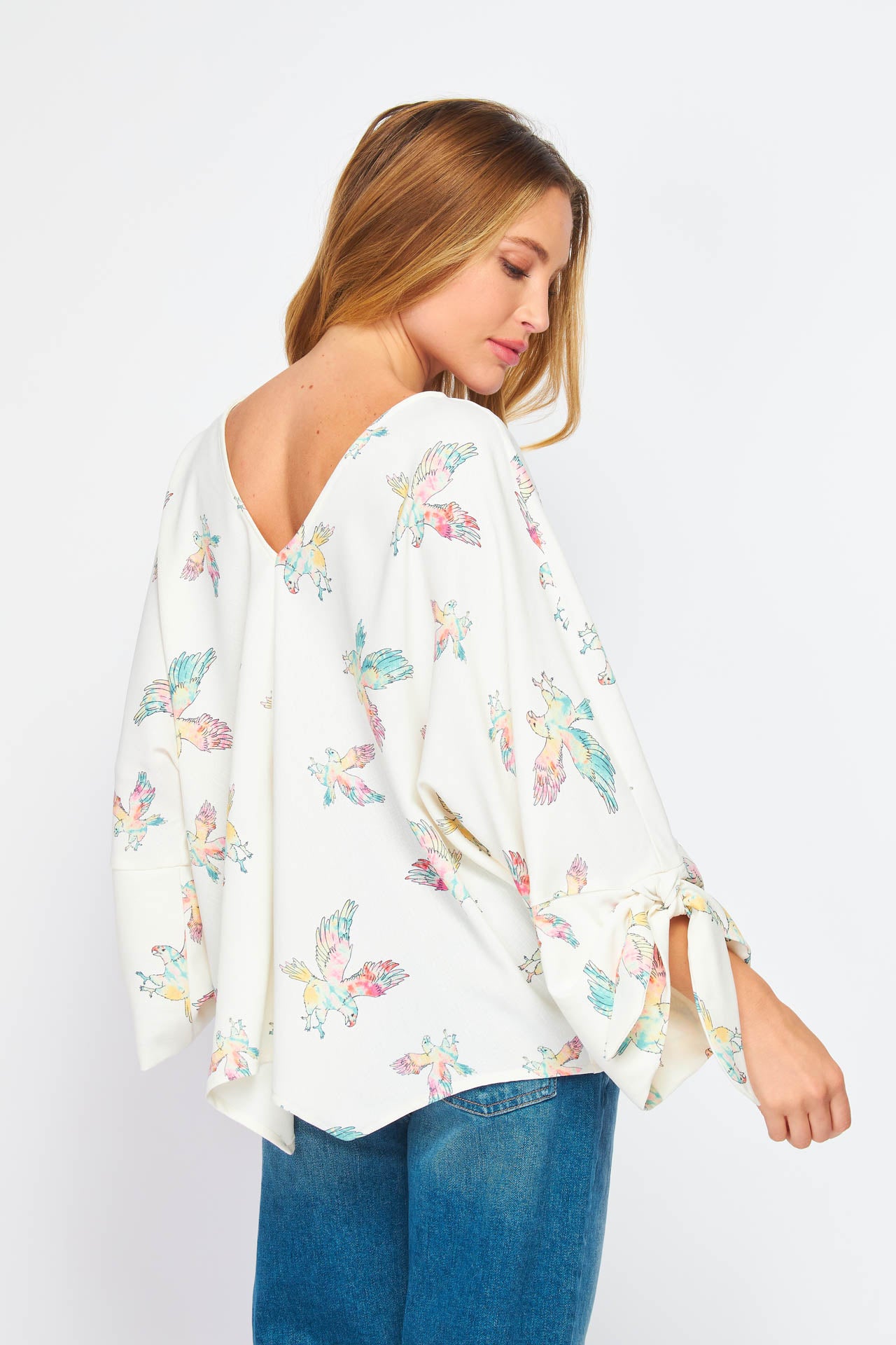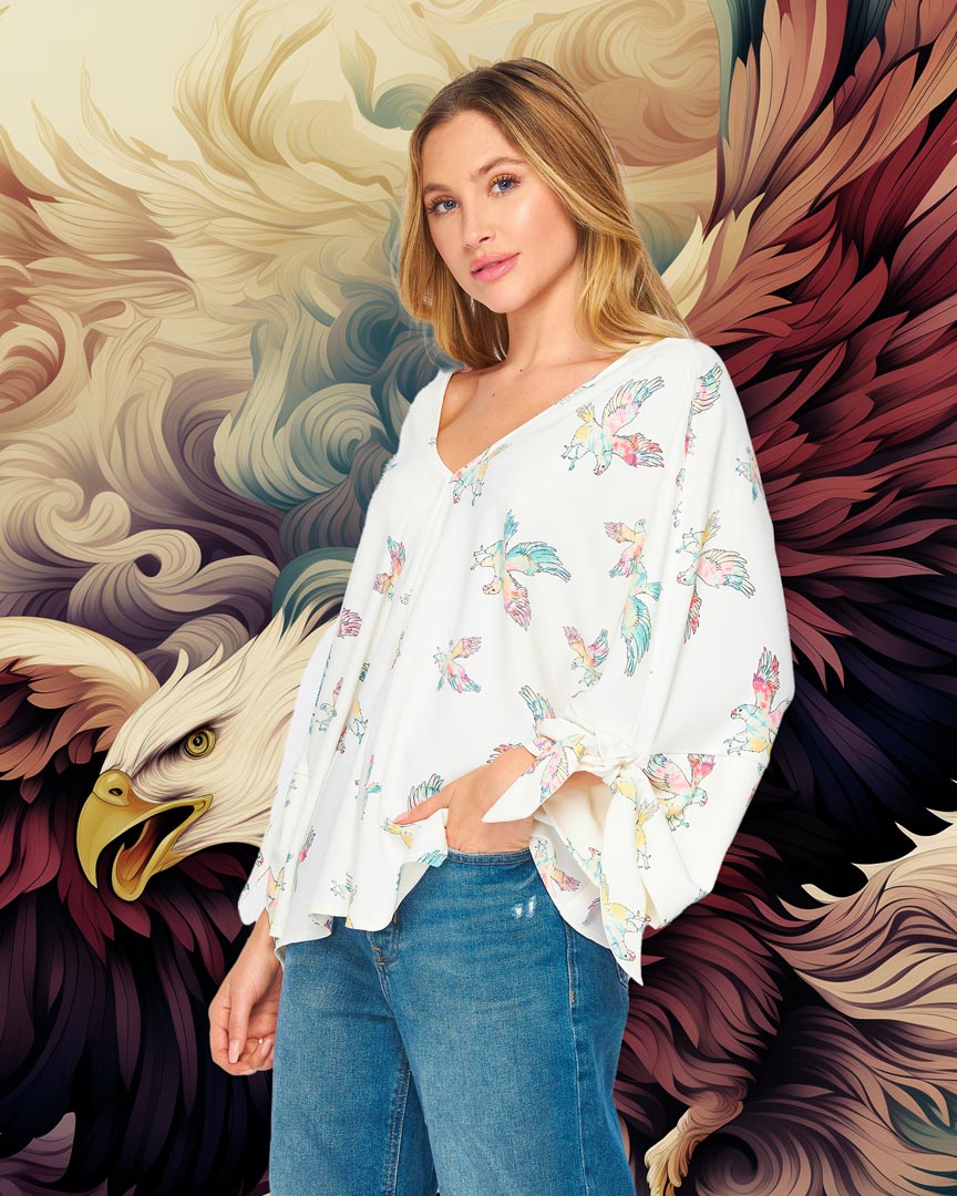 Eagle Tie Sleeve V neck Blouse