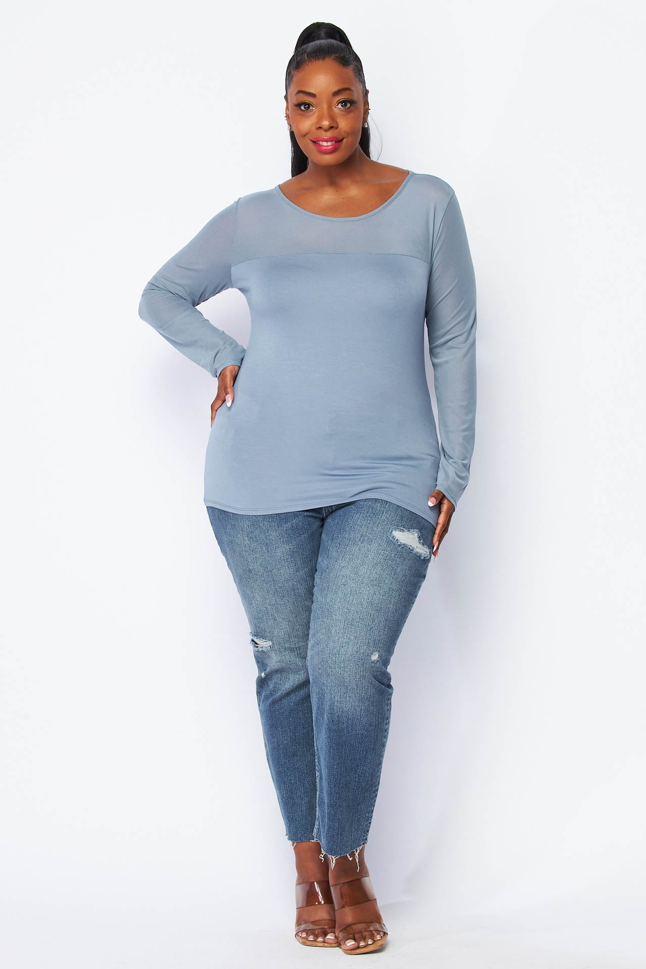 Mixed Media Mesh and Jersey Tee - sexy day or night - great under blazers or with your perfect pair of jeans!