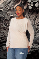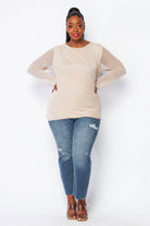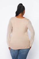 A long-sleeve top crafted from airy mesh features a ruched texture that offers a sultry look