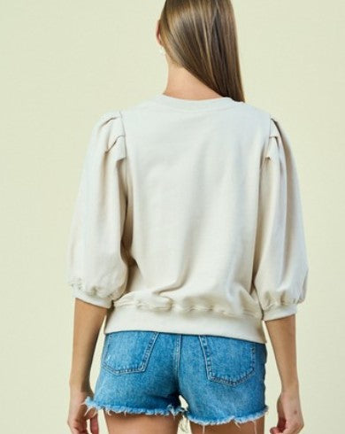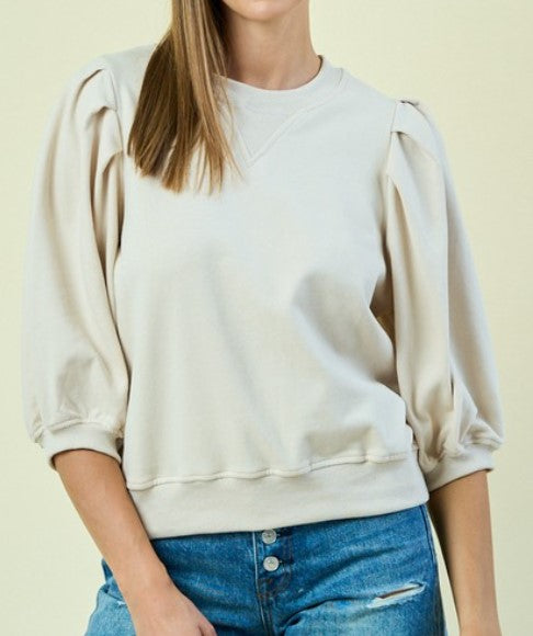 Balloon Sleeves and pleated shoulders bring depth to this everyday sweatshirt
