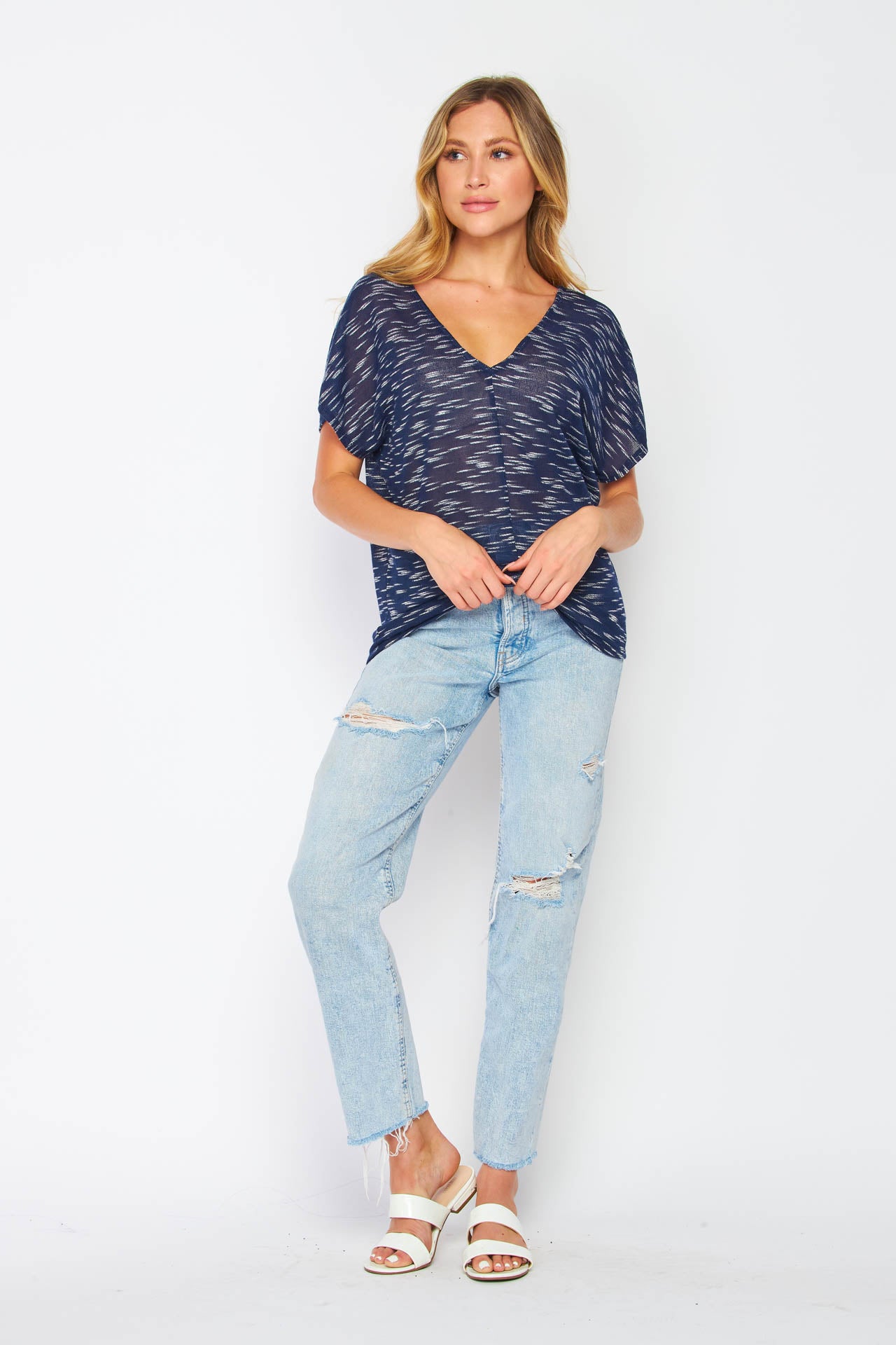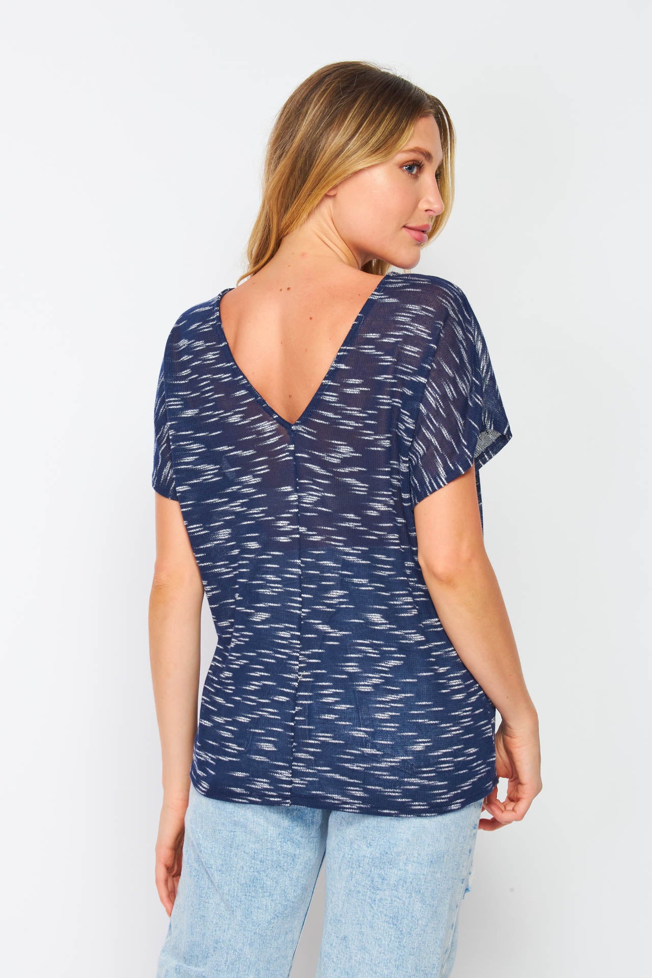Navy Double V Neck Knit Top