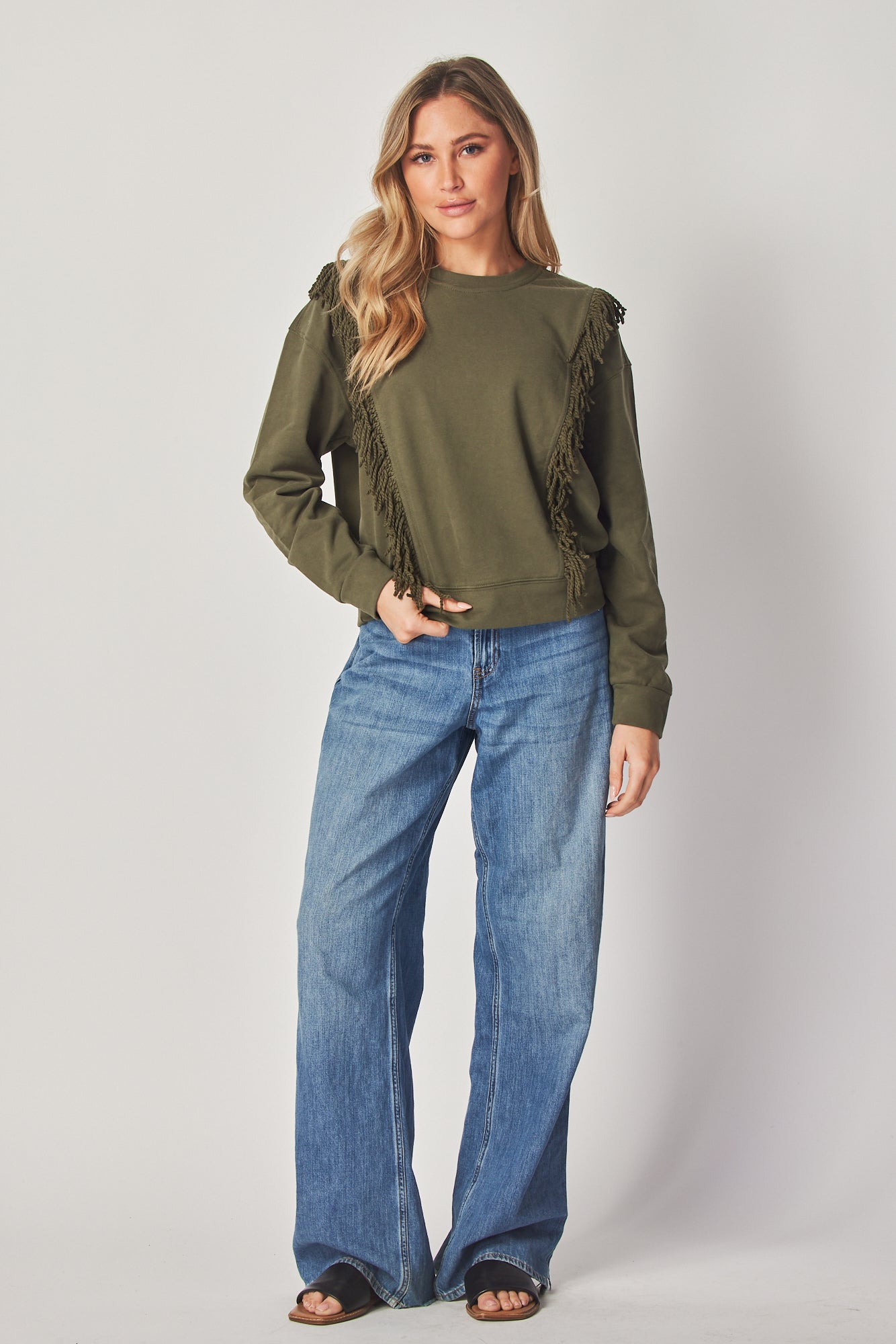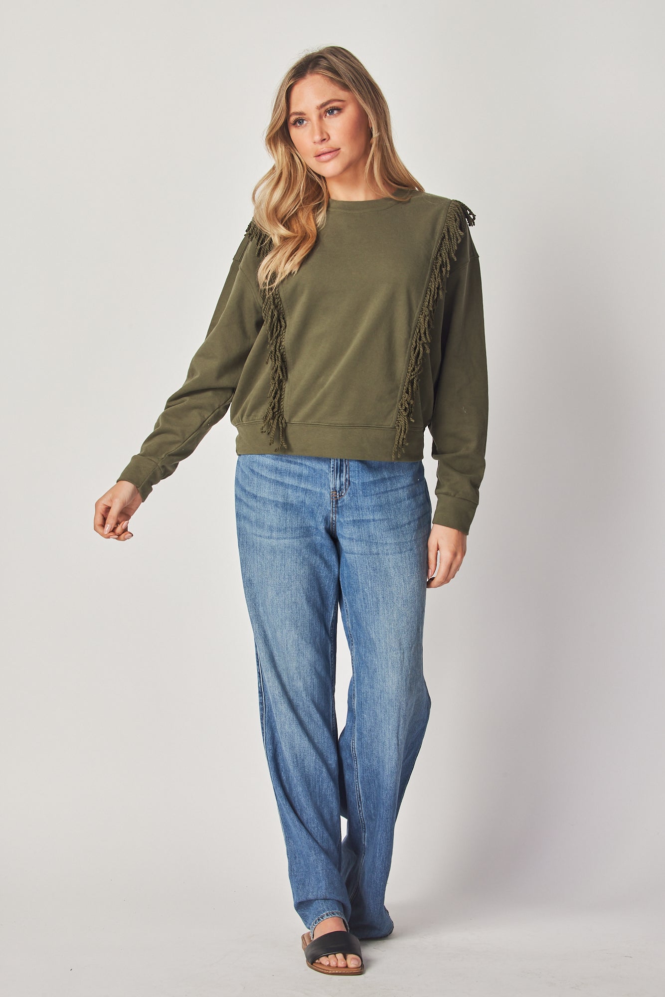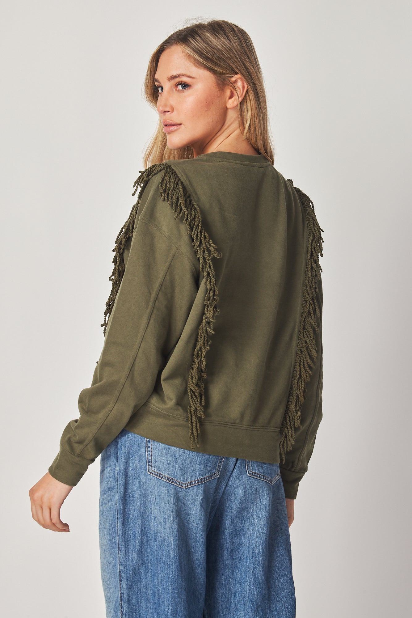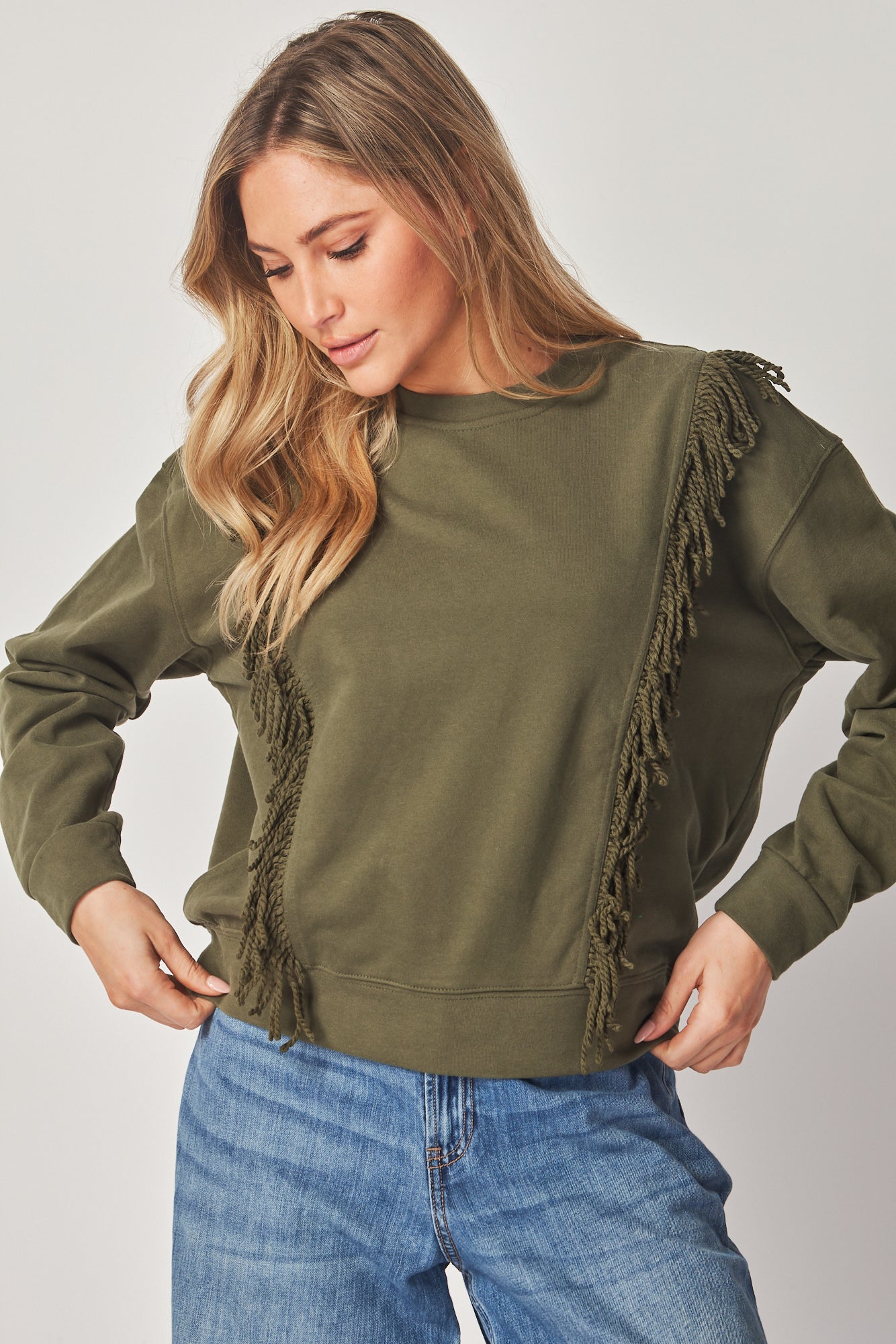 Get ready to rock some western vibes with our top-quality French Terry sweatshirt. Fringe embellishments on both sides add a playful touch, while our premium French Terry material guarantees comfort and longevity.